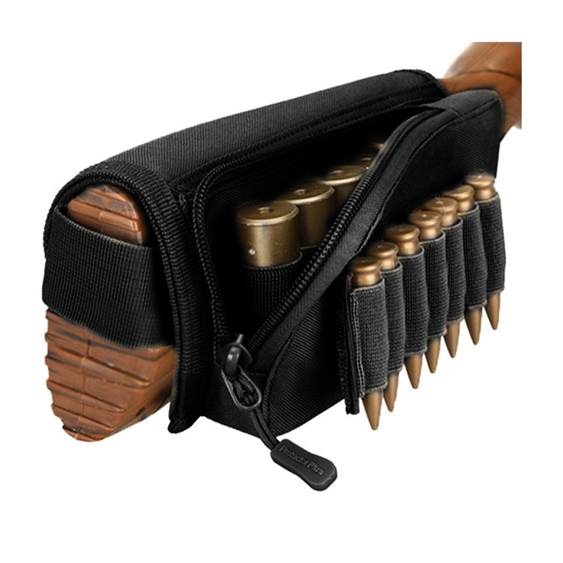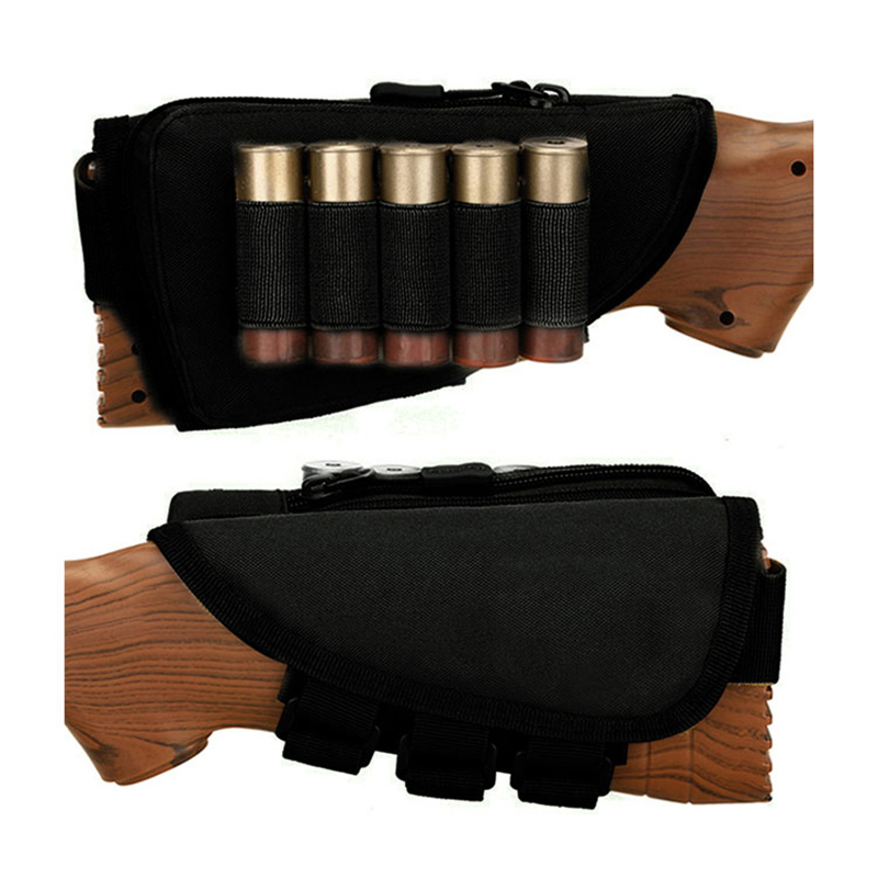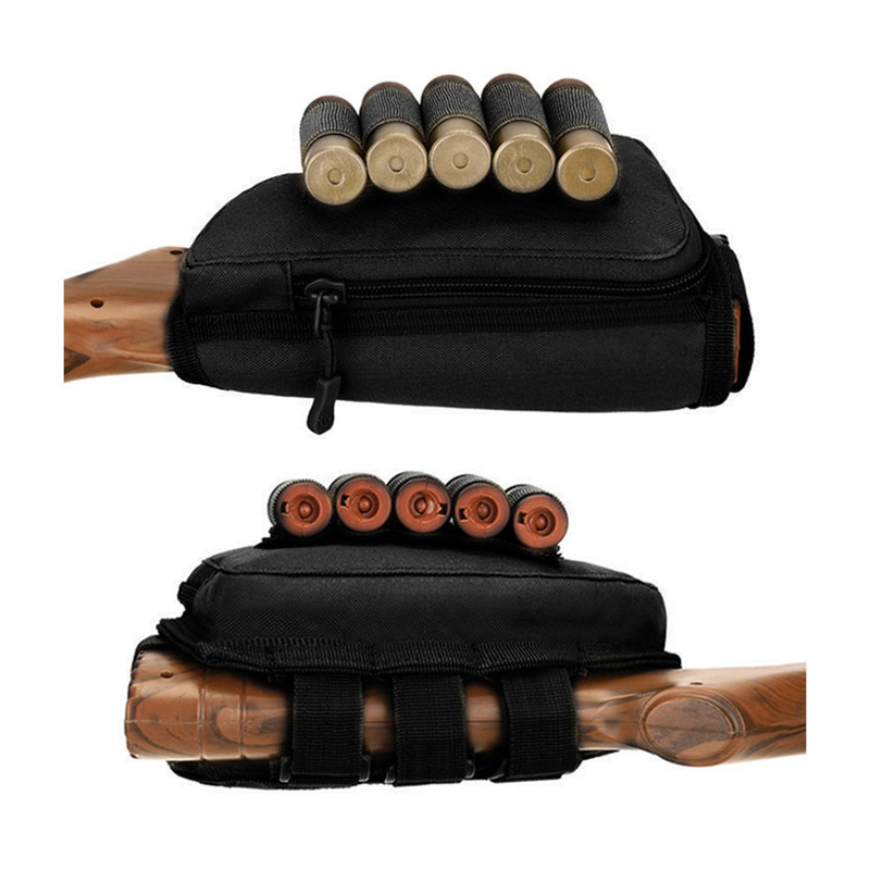 Držák munice na opěrku pažby Nastavitelný držák munice Lovecký nosič Pravoruké rychle odnímatelné pytle na náboje pro brokovnici (5 nábojů) a jednu pušku (7 nábojů).2 elastické pásky na munici připevněné magickými nálepkami, držák s 5 otvory je pro brokovnici uvnitř praktického pouzdra na zip, držák se 7 otvory je pro náboje z pušky venku. Dodává se s jednou brokovnicí (5 nábojů) a jednou puškou (7 nábojů) vyměnitelným držákem nábojnice.
