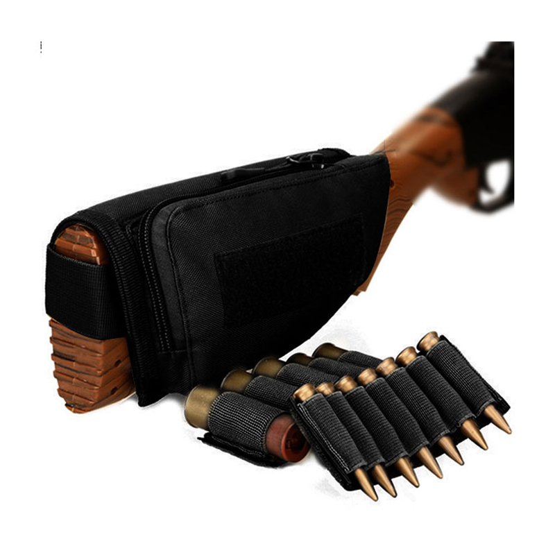 Pažba lícnice Držák střeliva Nastavitelný držák mušle Lovecký nosič Pravoruký rychlo odnímatelný vaky na náboje pro brokovnici (5 nábojů) a jednu pušku (7 nábojů).