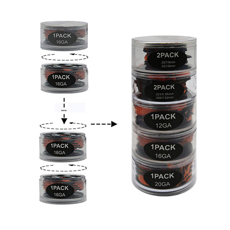 Čištění zbraní vrtání lana had vícevrstvý balíček.Kutilské.Kombinace kalibrů a množství Gun Cleaning Bore Snake Lana Vícevrstvá kombinace, tento vícevrstvý válec se skládá z několika lan na čištění pistolí snakes v různých rážích. Je vhodný pro skladování a sběr. Vnitřní jádro lze použít nejen jako jádro na navíjení lana, ale také jako tažné madlo. Takové válcové balení je snazší najít než jednotlivé balení. Design je patentován společností Rotchi.