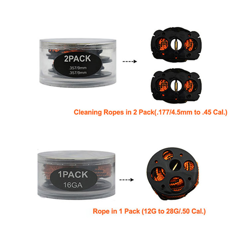 ● Tento vícevrstvý válec se skládá z několika lan pro čištění zbraní hadů různých ráží. Je vhodný pro skladování a sběr. Vnitřní jádro lze použít nejen jako jádro na navíjení lana, ale také jako tažné madlo. Takové válcové balení je snazší najít než jednotlivé balení. Design je patentován společností Rotchi.