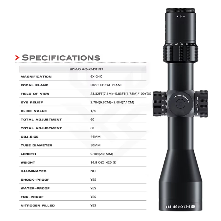 HD MAX 6-24X44 SF FFP HD lovecký monokulární dalekohled s vysokým objektivem Velkoobchod