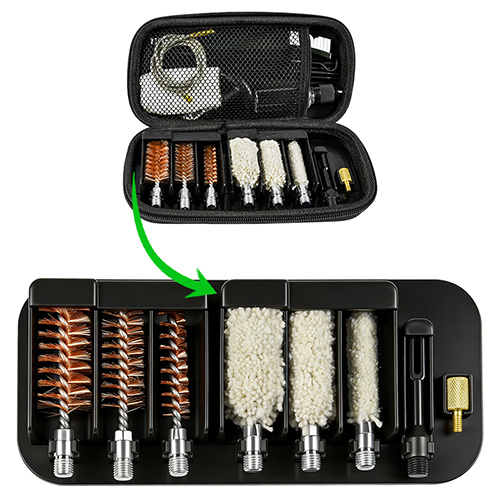 Sada na čištění brokovnice obsahuje 3 velikosti (12/16G, 20G, 410). Mosazné kartáče a bavlněné mopy, 4 tyče 1 calbe. Písky a černá barva na výběr.
