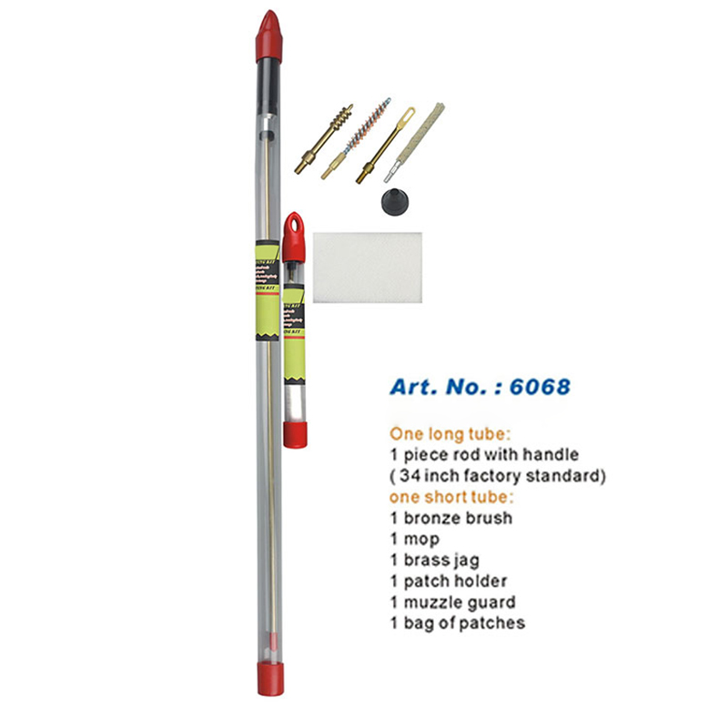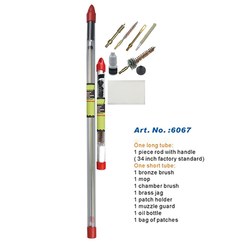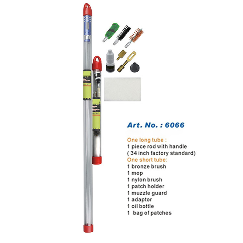 Sada na čištění pušky Balení jednoho kusu dlouhé tyče ● Jednodílná dlouhá tyč 34 palců/860 mm, žádné řezání, žádný krok na tyč. ● Vysoce odolné kartáče a příslušenství vhodné pro čištění vrtů. ● Otočná hliníková rukojeť se volně pohybuje ● Dlouhá průhledná tuba zabalená pro snadné přenášení a skladování. ● Snadné nasazení OEM nebo zákaznické hůlky a loga