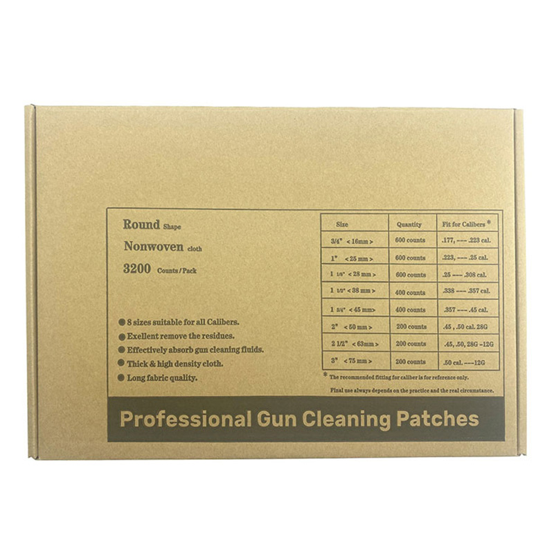 Univerzální bílá bavlněná tkanina kulaté náplasti na čištění pistolí Blistrová krabička 8 velikostí, 3540 kusů ● 【All in One Combo Pack】8 velikostí čisticích záplat se hodí pro všechny střelné zbraně ráže od 0,177cal. do brokovnice 12G; Ušetřete peníze a čas na nákup různých velikostí pro různé ráže střelných zbraní; ● 【Bavlněný materiál s vysokou savostí】 Tato netkaná látka s vysokou absorbcí. Quick absorbuje zbytky kapalin, odstraňuje zbytky a rez z povrchu otvoru. ● 【Tlustý materiál】 Silný povrch z netkané textilie vysoce posiluje čistý výkon. ● 【Každá velikost v zásobníku】Zabalíme 8 velikostí po 8 zásobníkech. A každý zásobník s jeho velikostí vytištěnou vedle zásobníku. Snadné nalezení a odebrání správné velikosti z balení. ● 【OEM】Customer Logo je přijatelné.